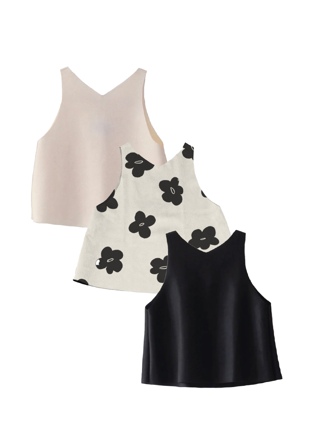 Pack x 3 Top cleo flor + Top cleo Marfil + Top cleo negro