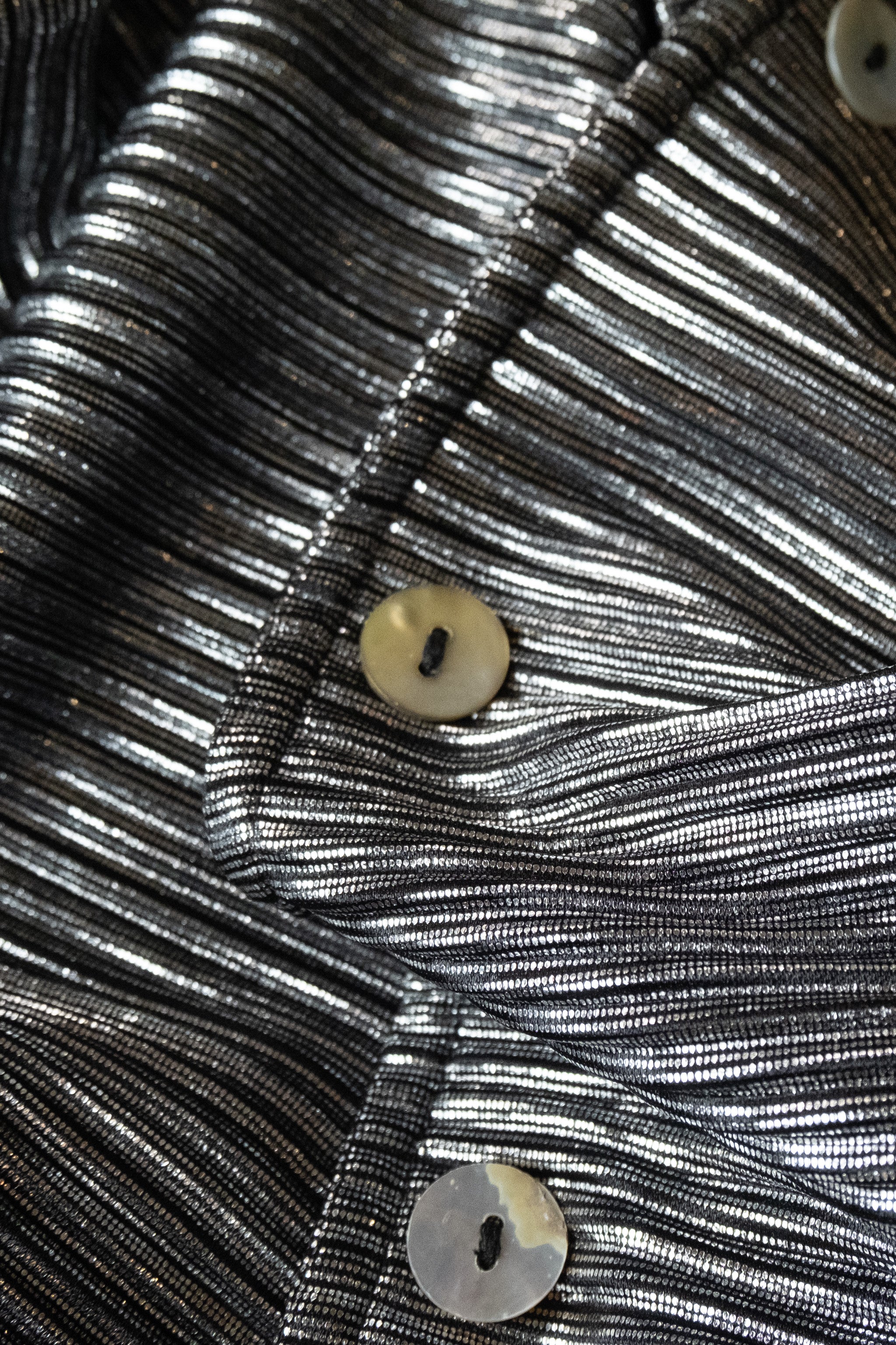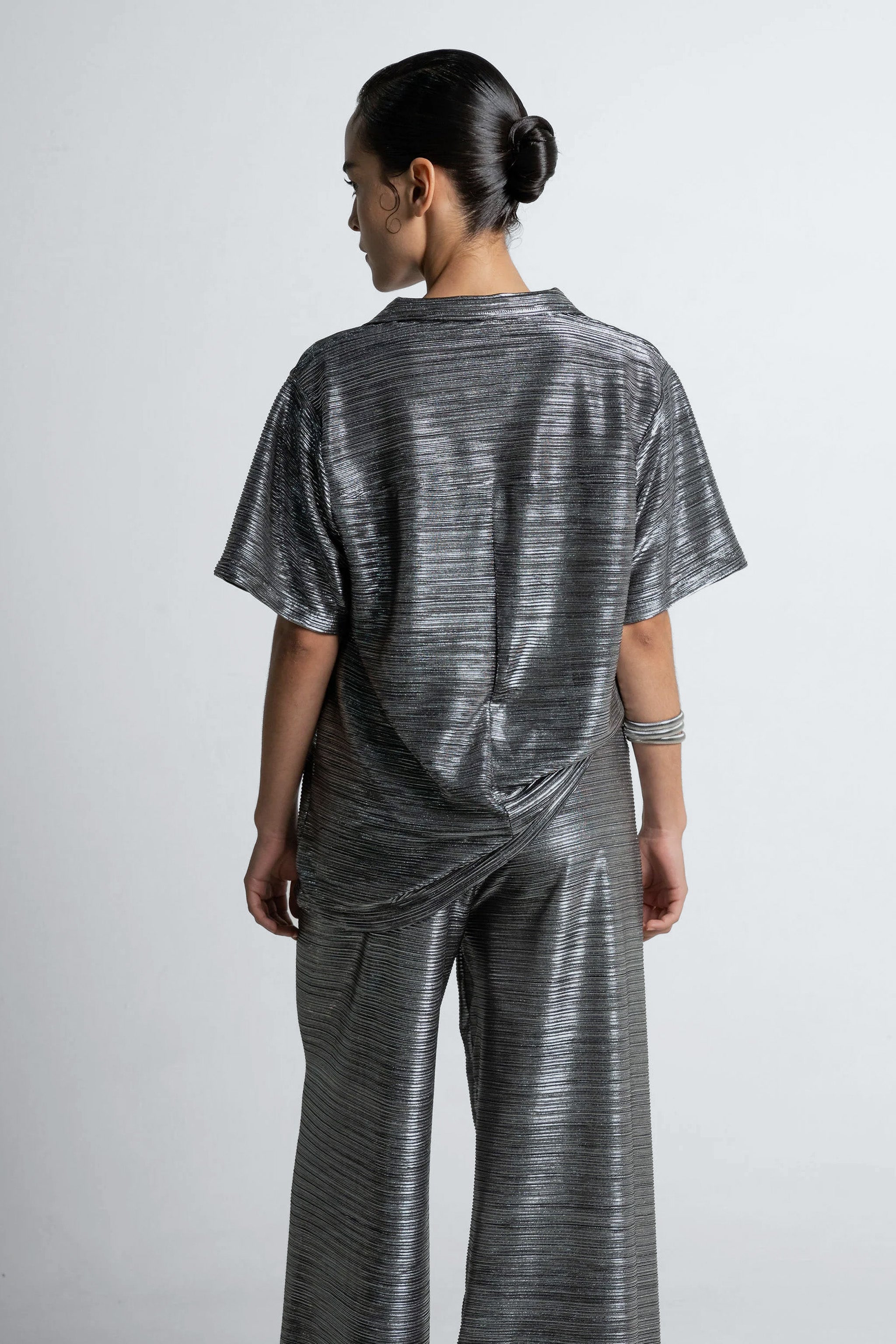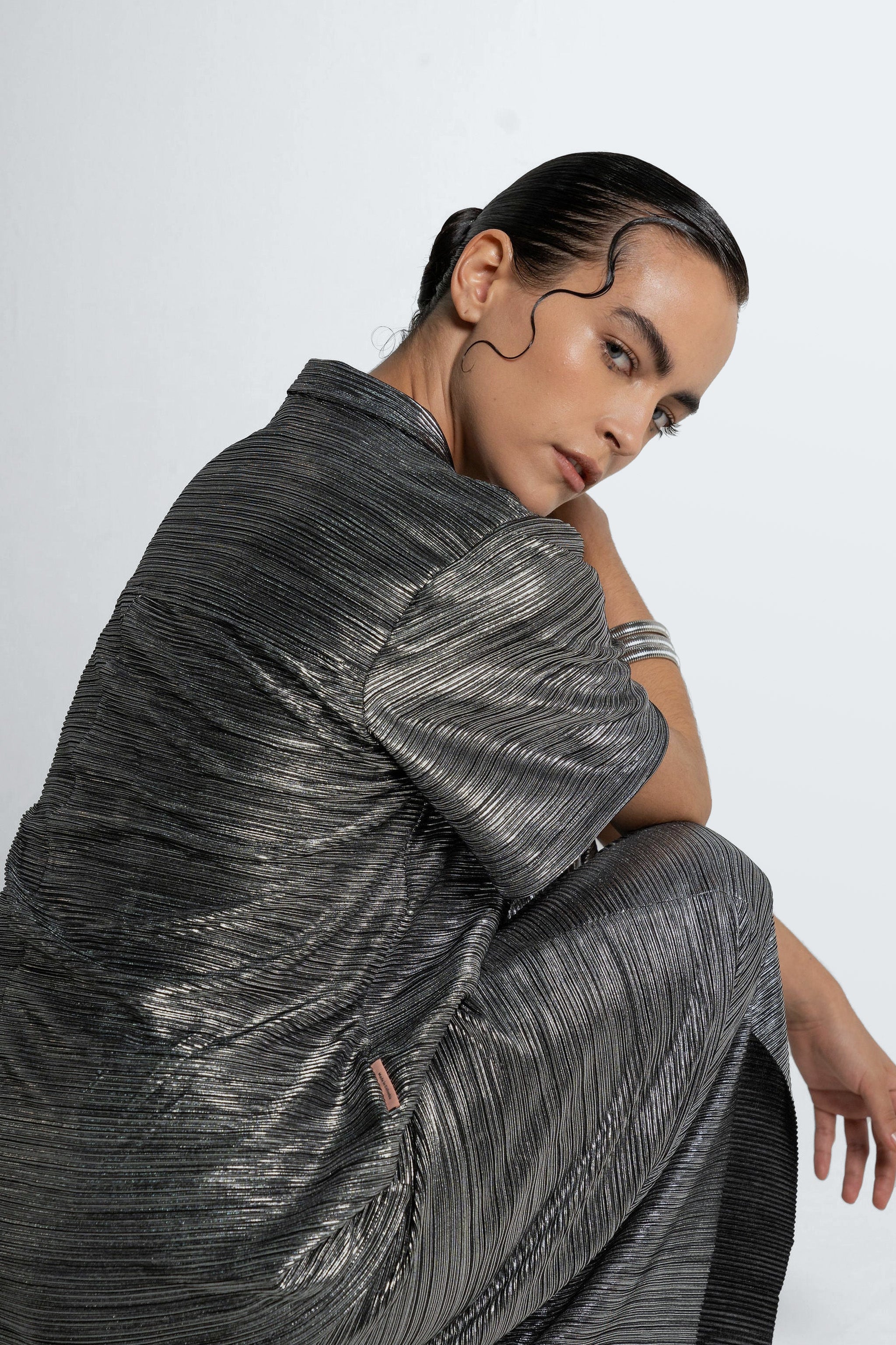 Esta camisa es la perfecta definición de atemporalidad, chicness y comodidad; su silueta es holgada y muy cómoda; es de esas piezas que querrás usar todos los días, con prendas clásicas y otras un poco más formales o tranquilas, no tengas miedo de usar el brillo a tu favor.