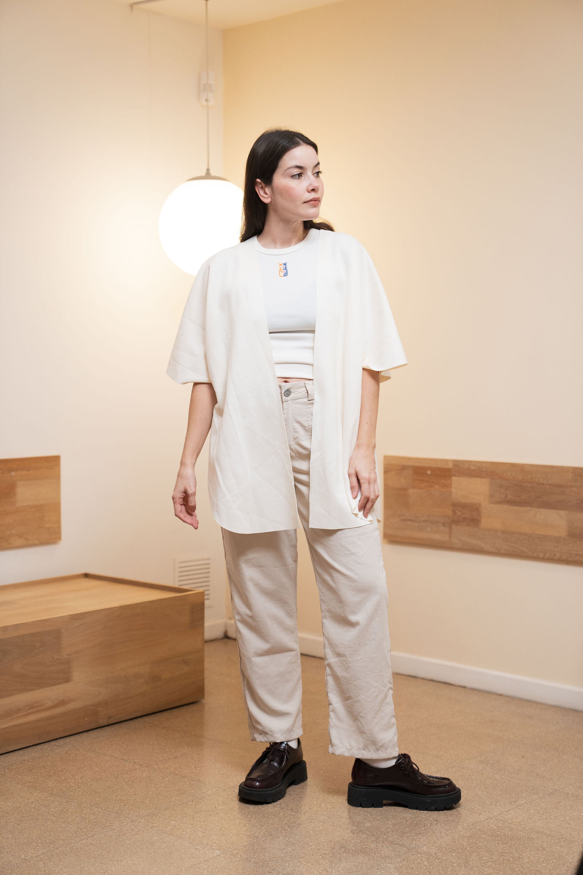 Nuestros esenciales se renuevan, y con ellos llega Capa Calma; un cover up con mucho vuelo y movimiento, ideal para usar sobre otras prendas, esta prenda es el complemento perfecto, recuerda que puedes usarla abierta ó anudada adelante, uniendo las dos puntas de los costados y haciendo un amarre en la parte delantera; es decir, podrás tener dos prendas en una!