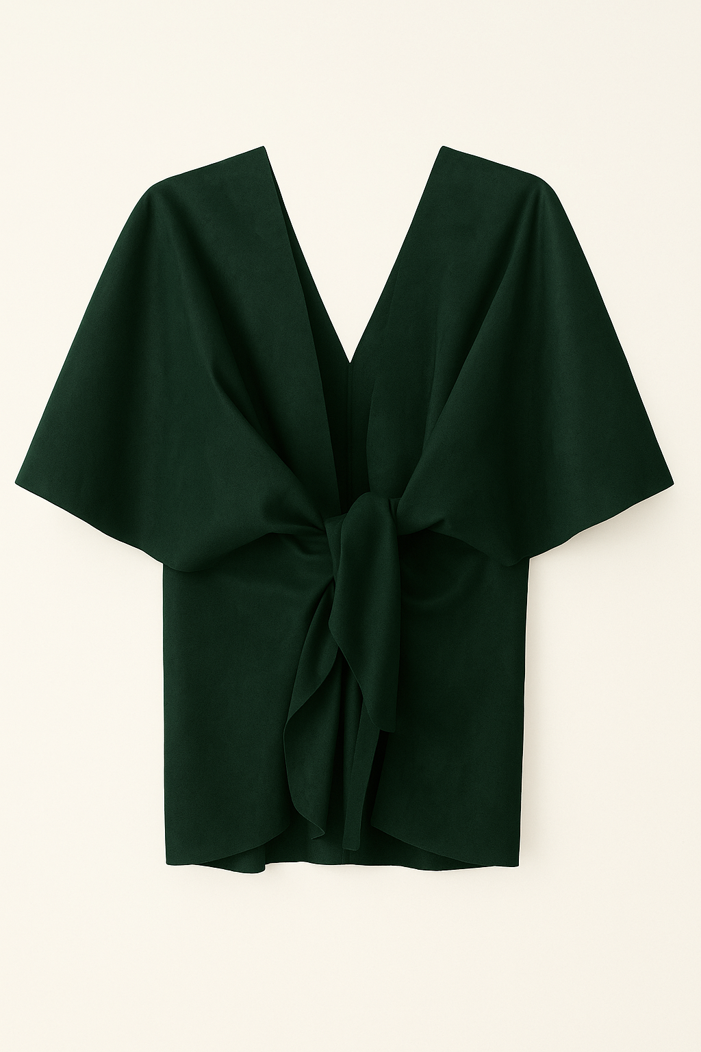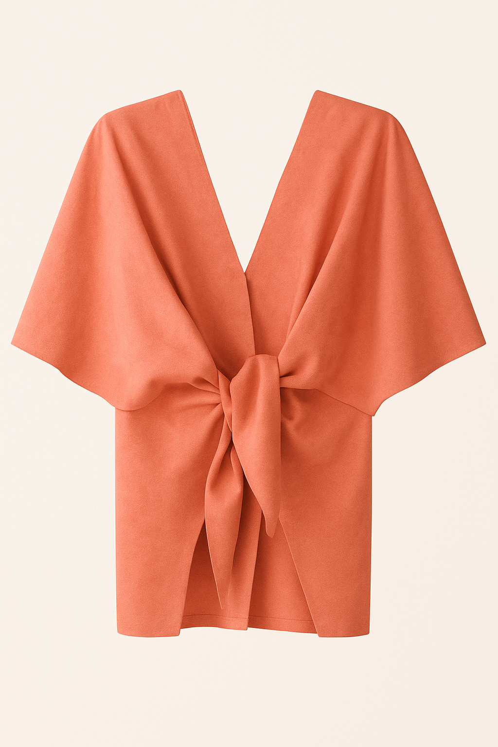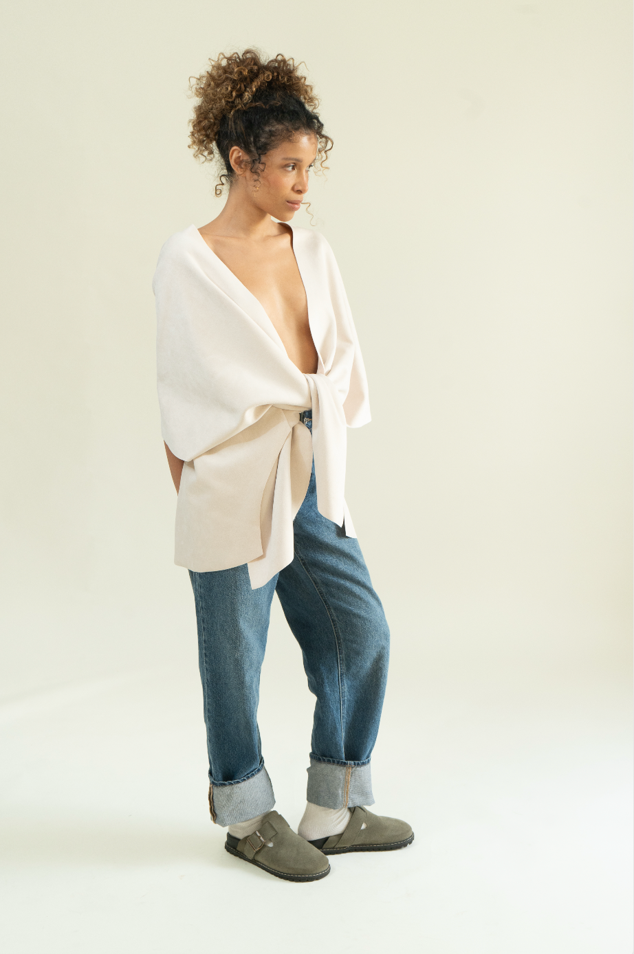 Su silueta amplia y liviana la hace perfecta para usar abierta o anudada al frente, creando dos estilos en una sola prenda.