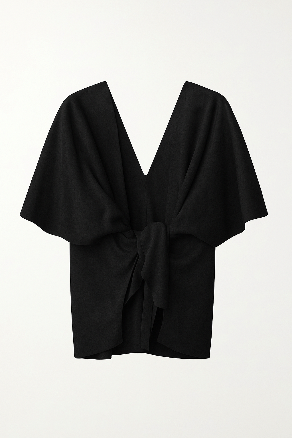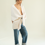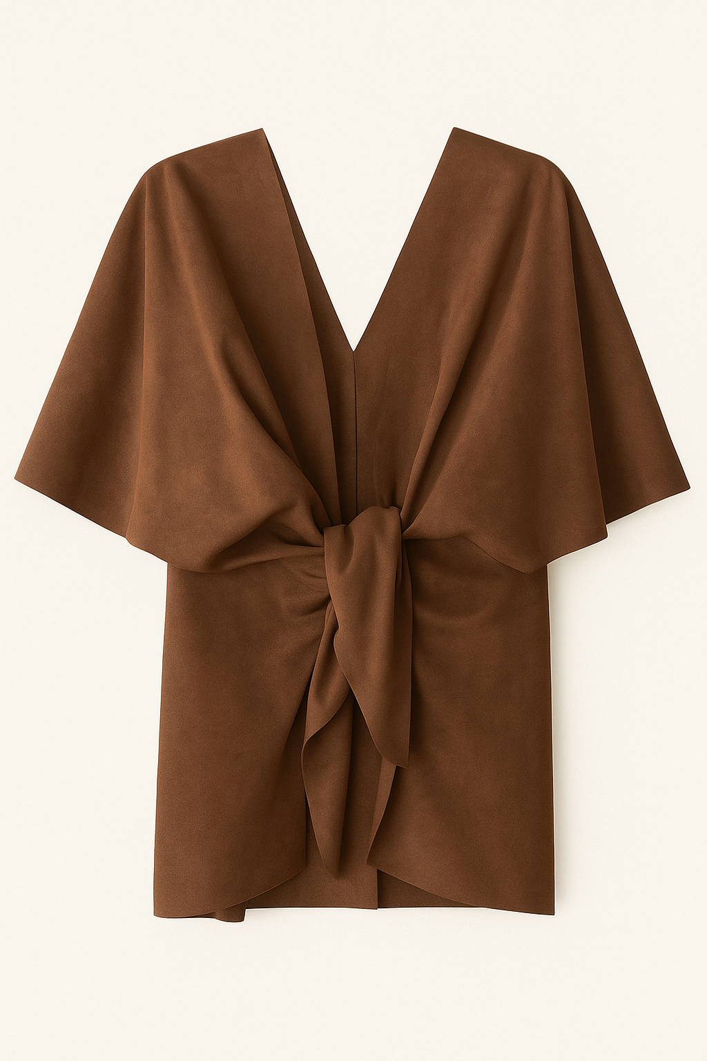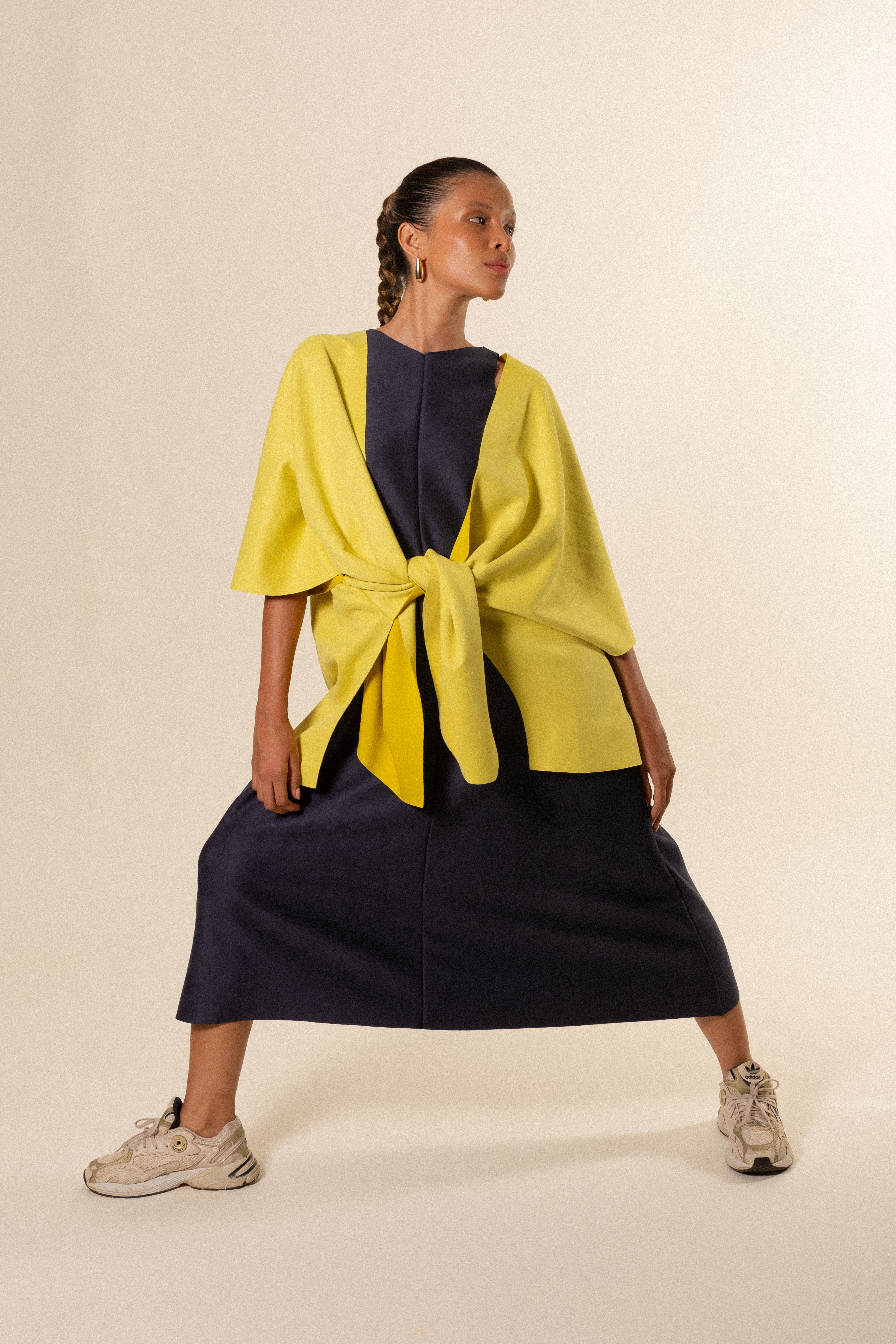 Su silueta amplia y liviana la hace perfecta para usar abierta o anudada al frente, creando dos estilos en una sola prenda.