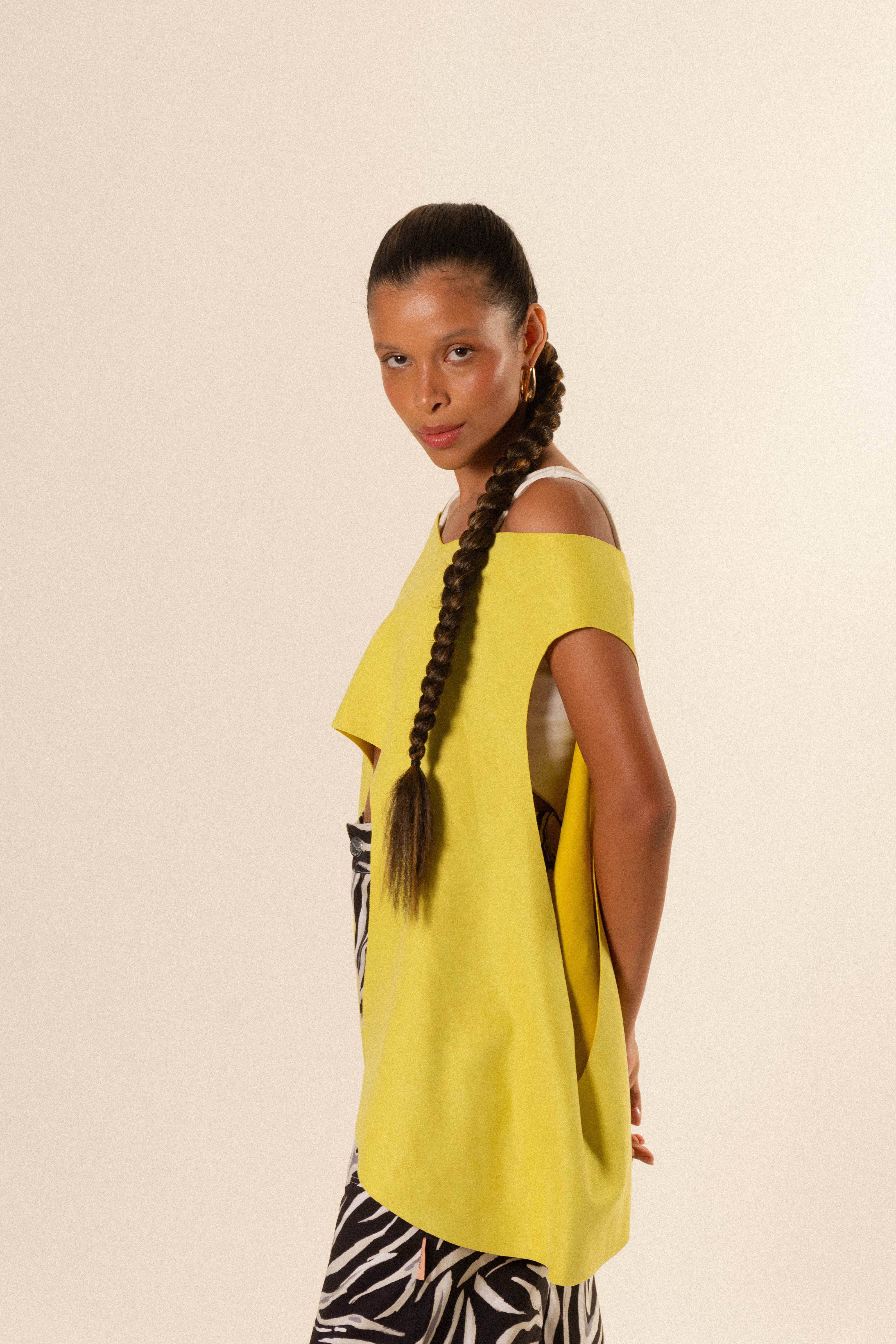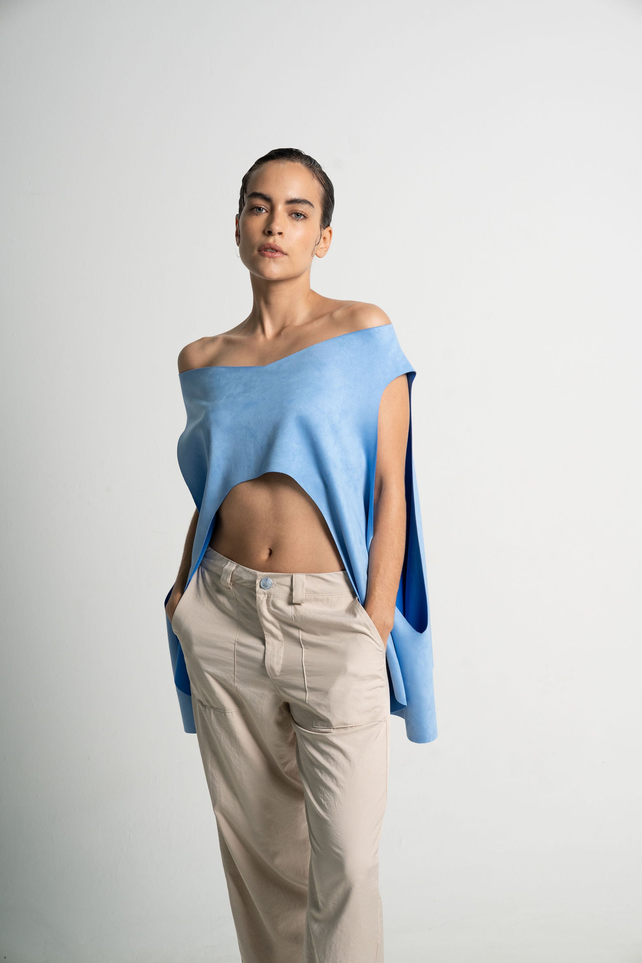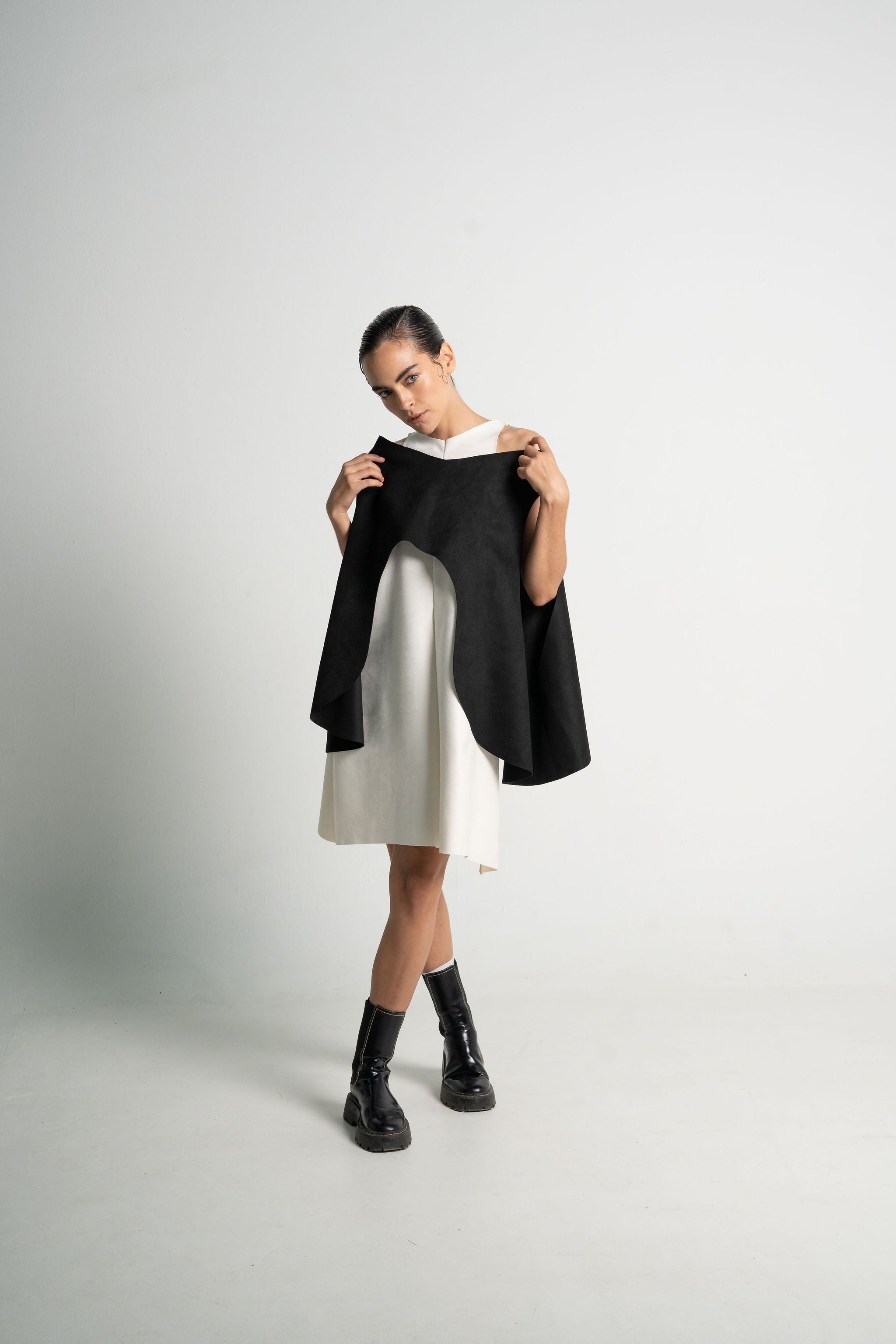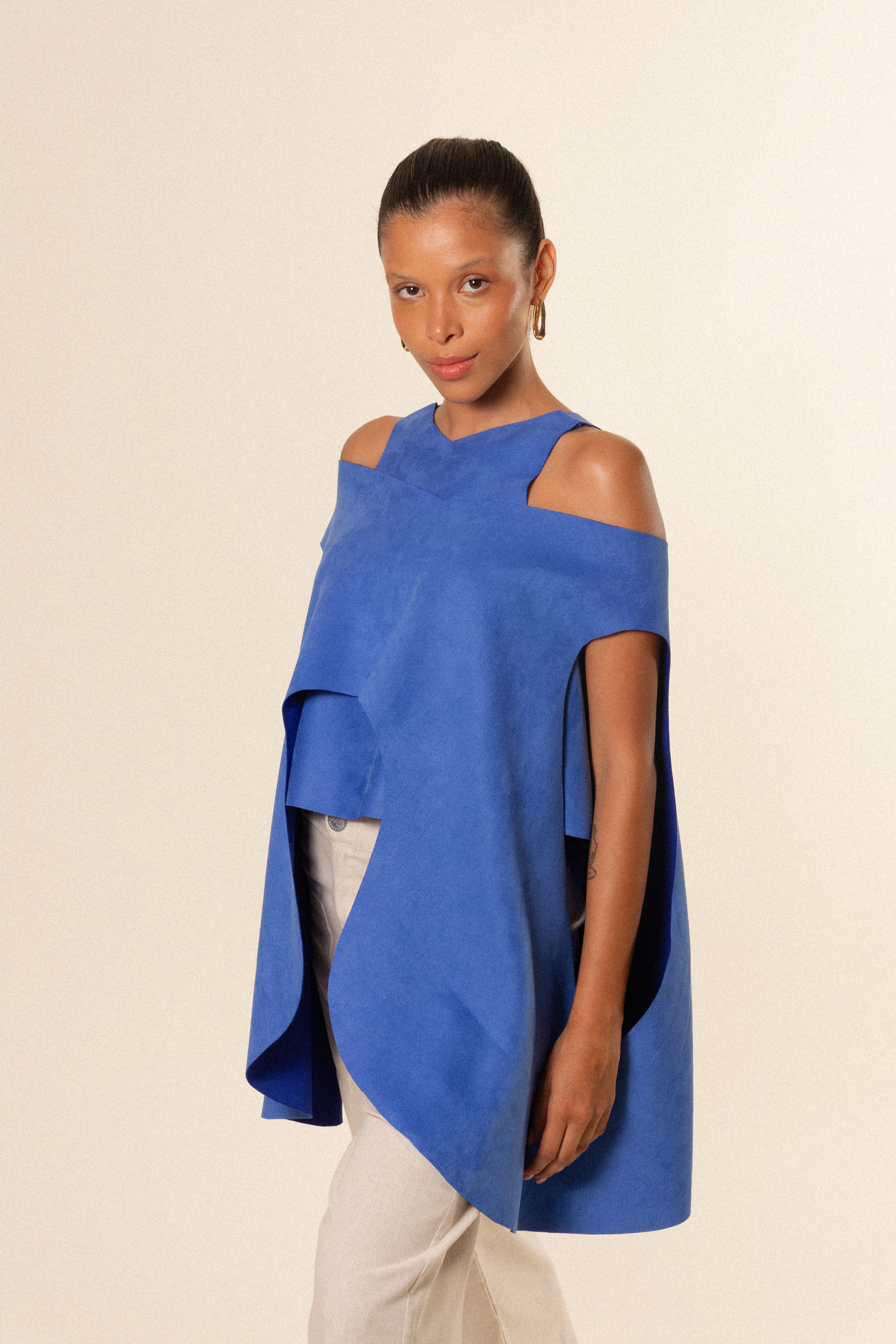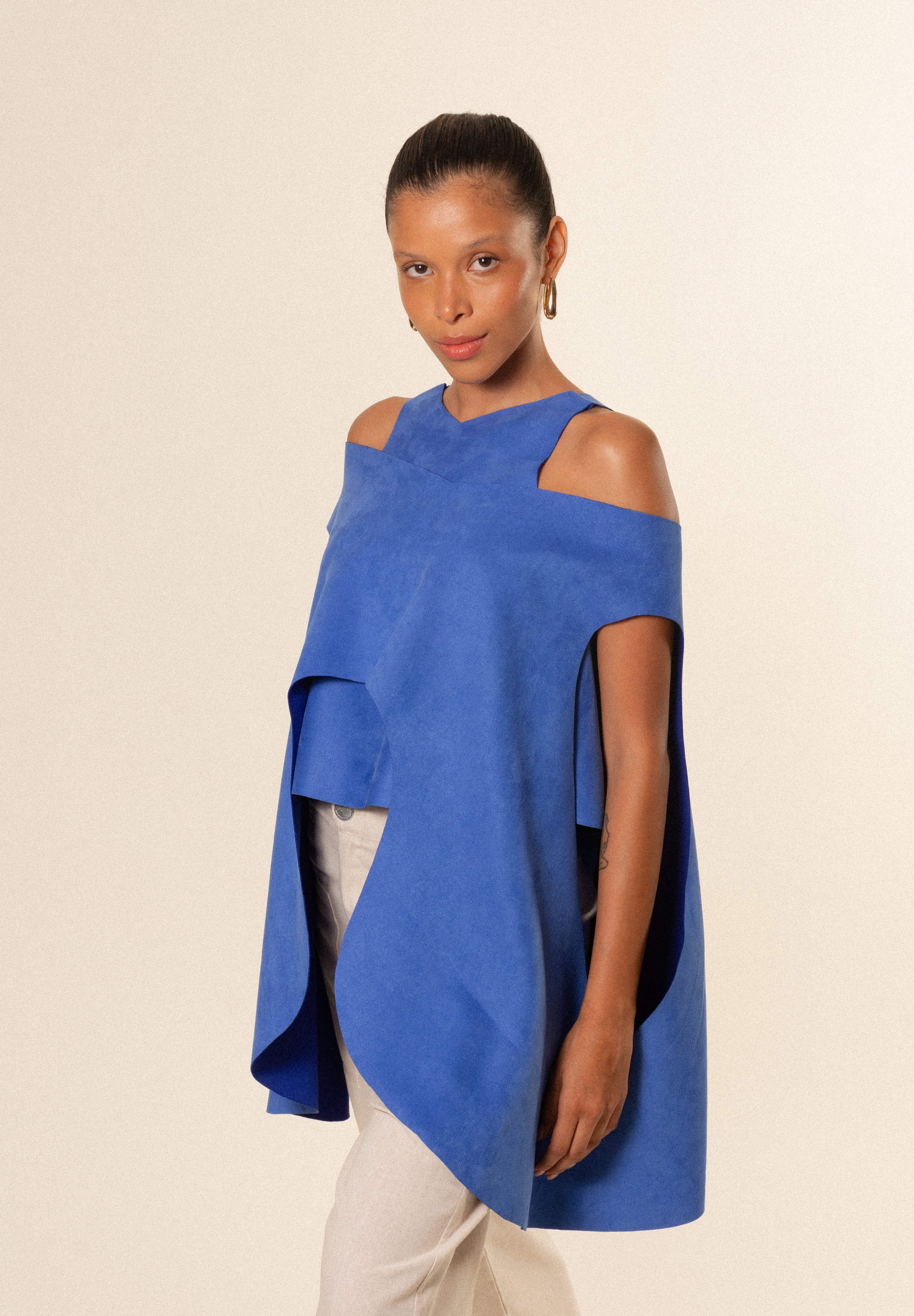 Eleva cualquier look con nuestra capa para mujer, una prenda exterior ligera, elegante y diseñada para complementar y transformar tus outfits. Su silueta fluida y su diseño limpio hacen de esta pieza un básico premium ideal para crear looks modernos, cómodos y con estilo.