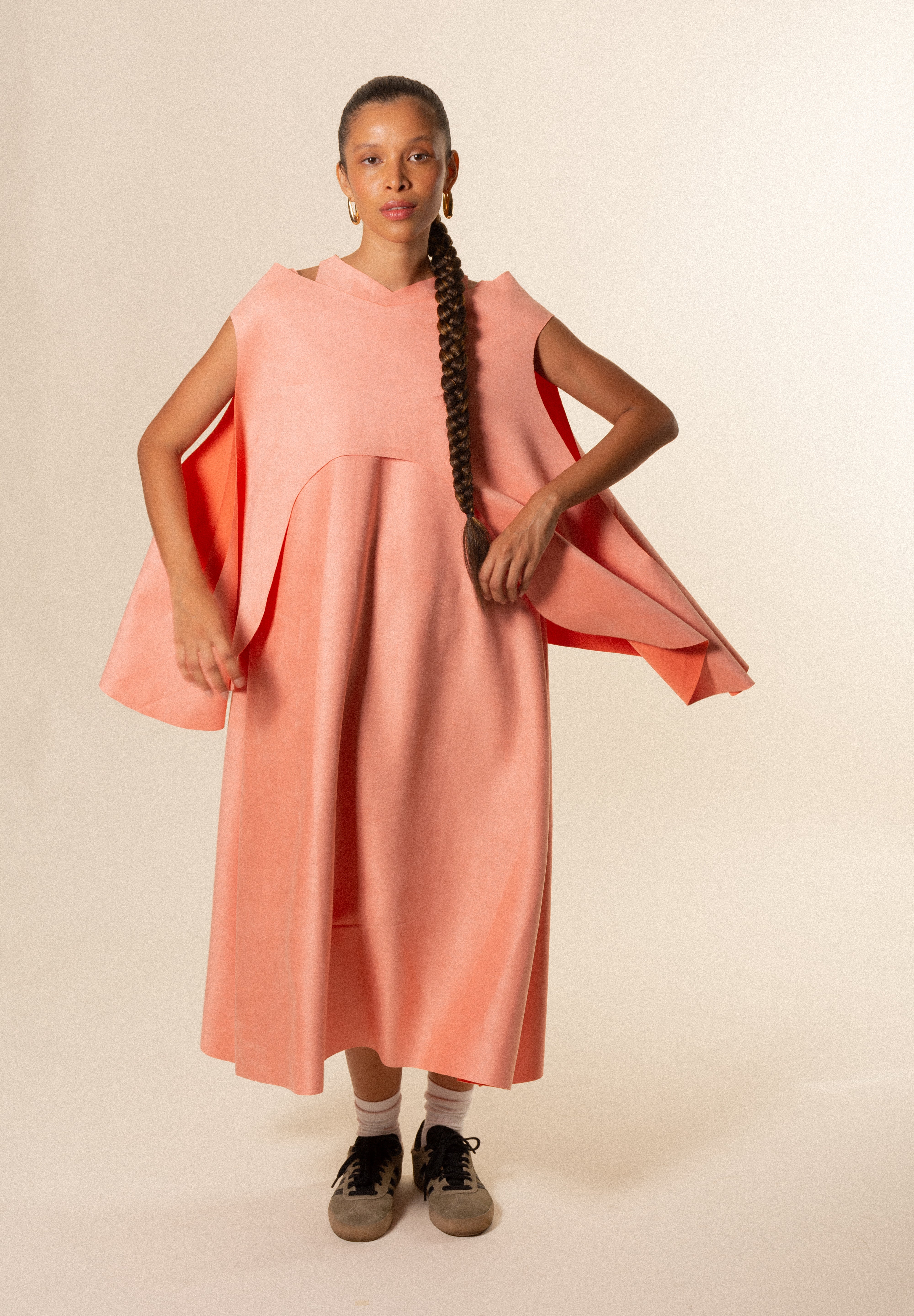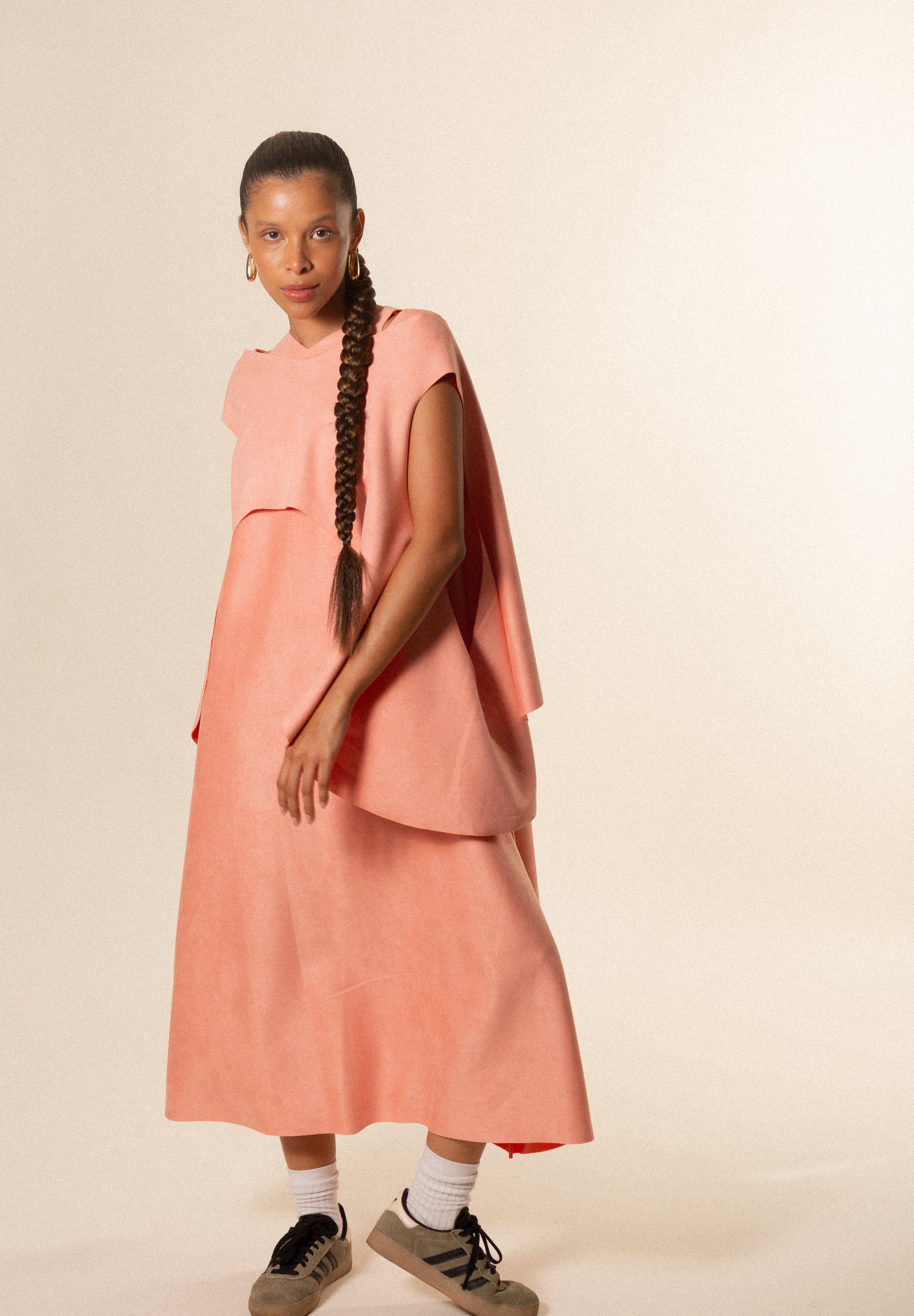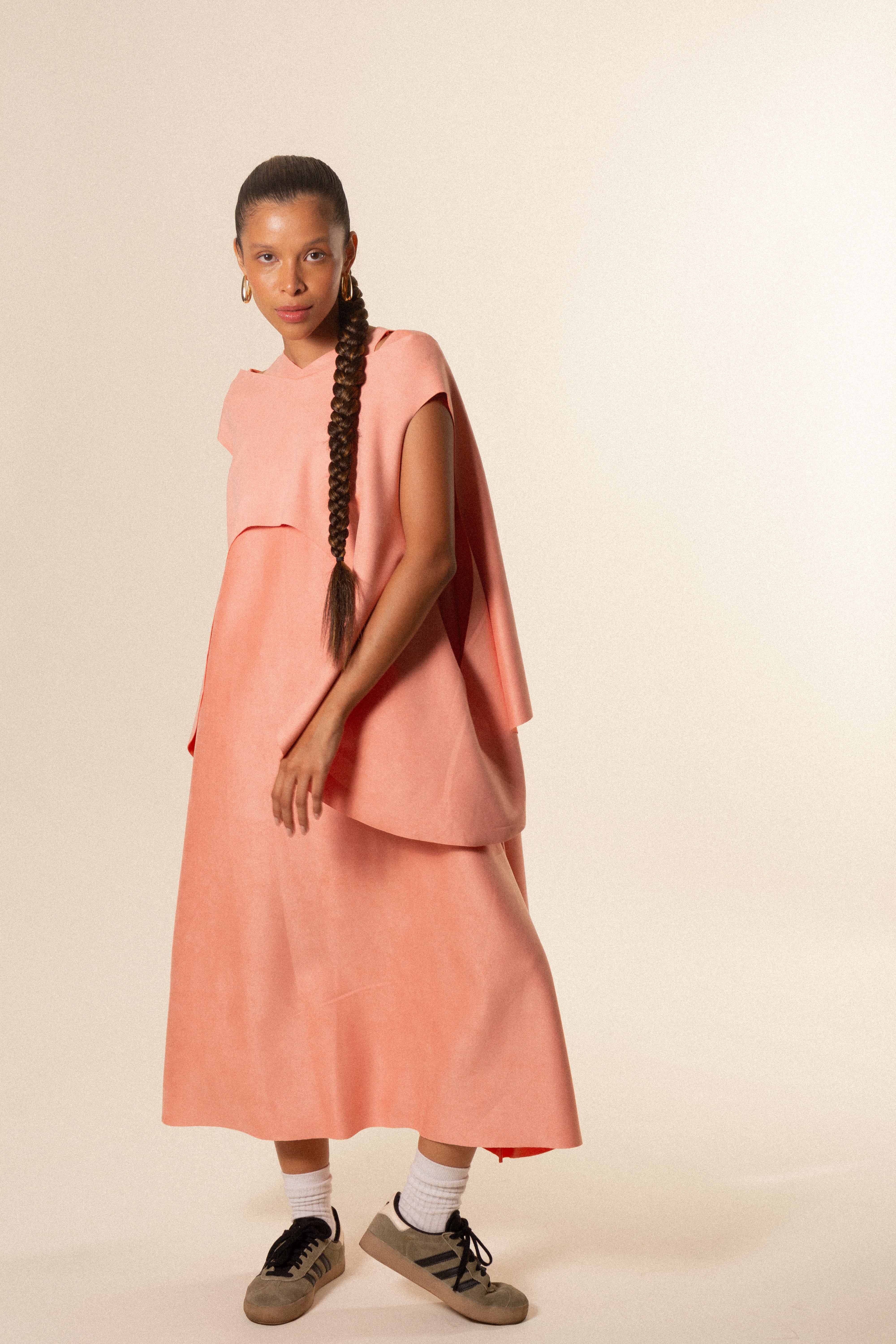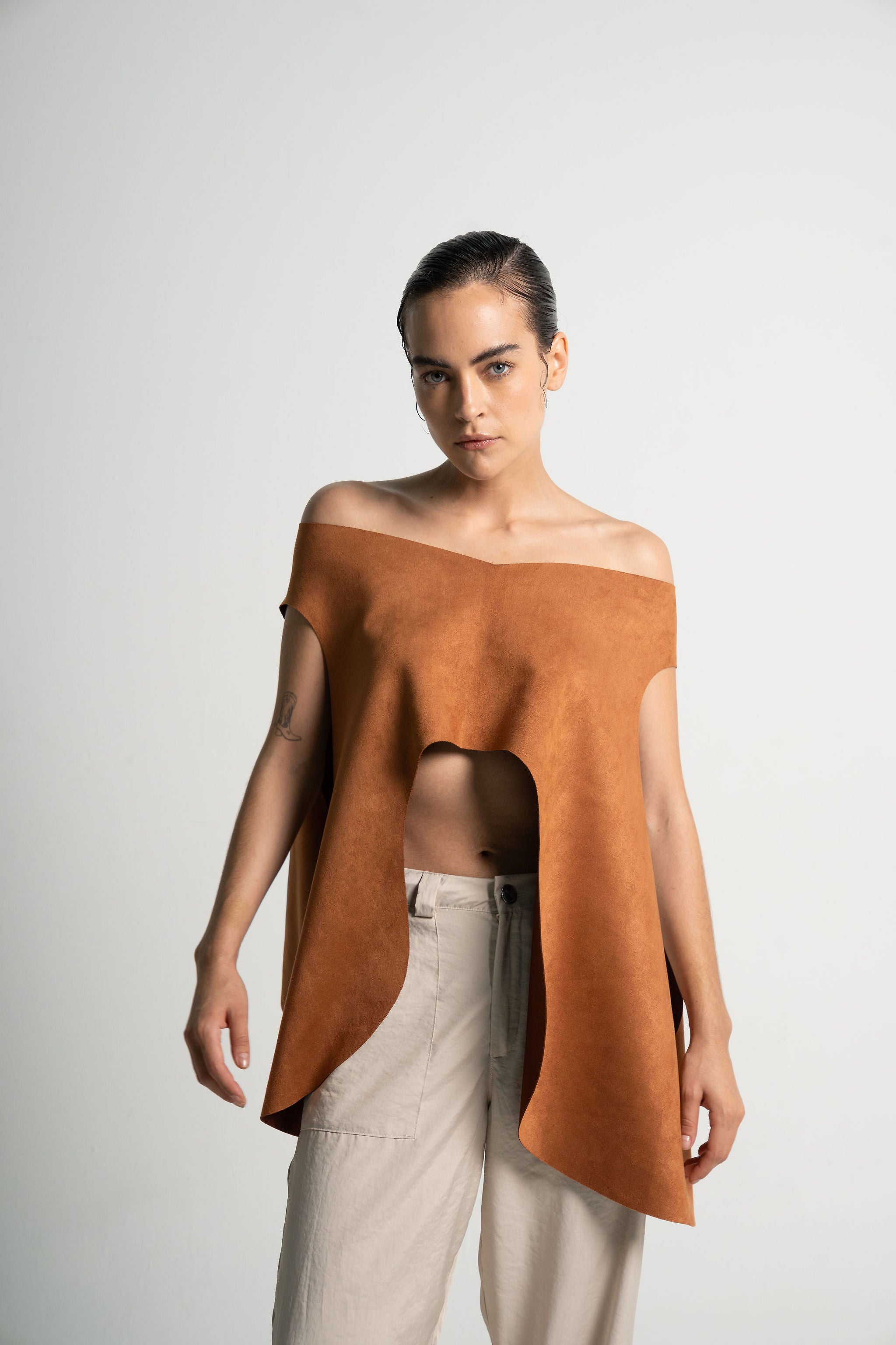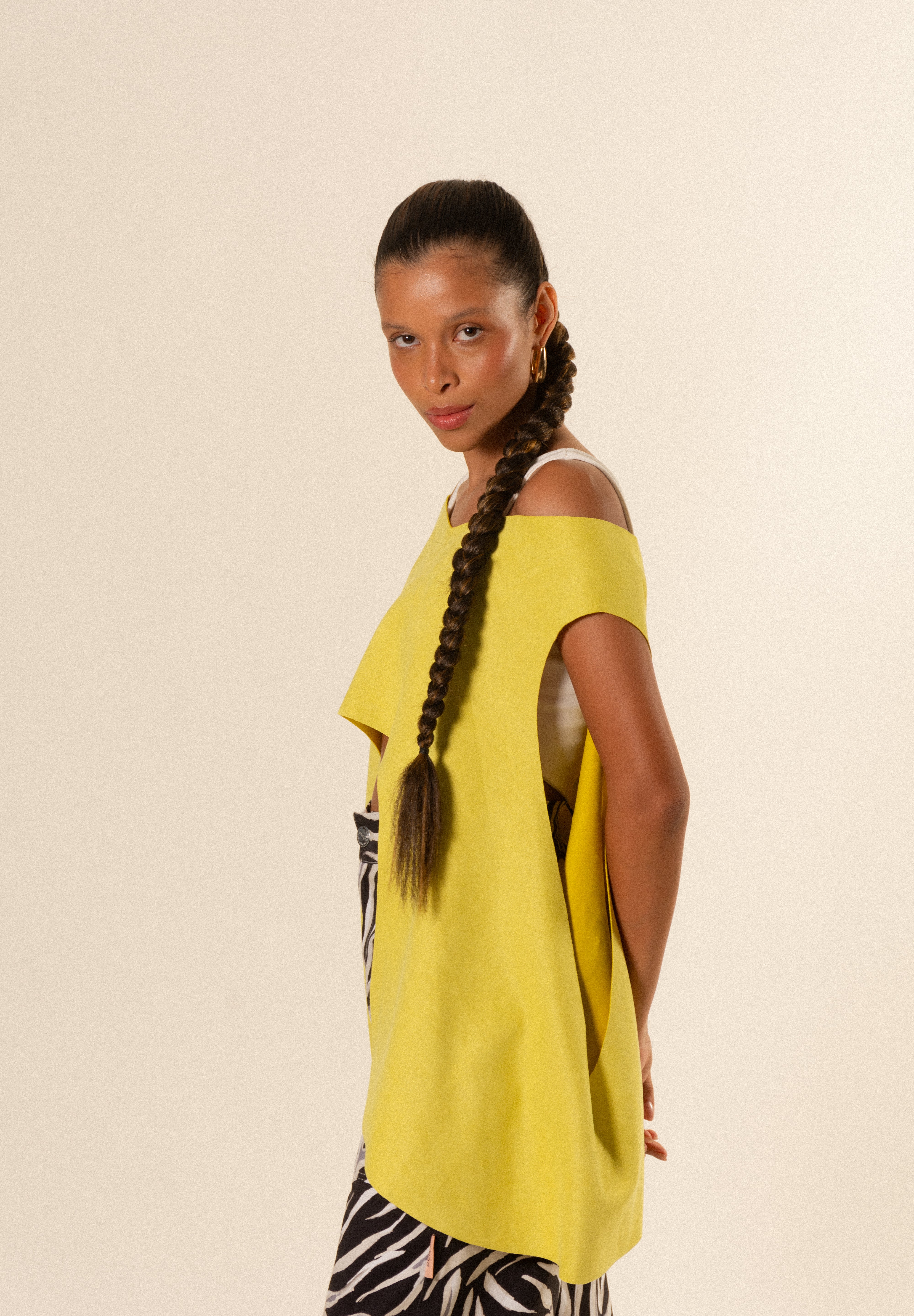 Eleva cualquier look con nuestra capa para mujer, una prenda exterior ligera, elegante y diseñada para complementar y transformar tus outfits. Su silueta fluida y su diseño limpio hacen de esta pieza un básico premium ideal para crear looks modernos, cómodos y con estilo.