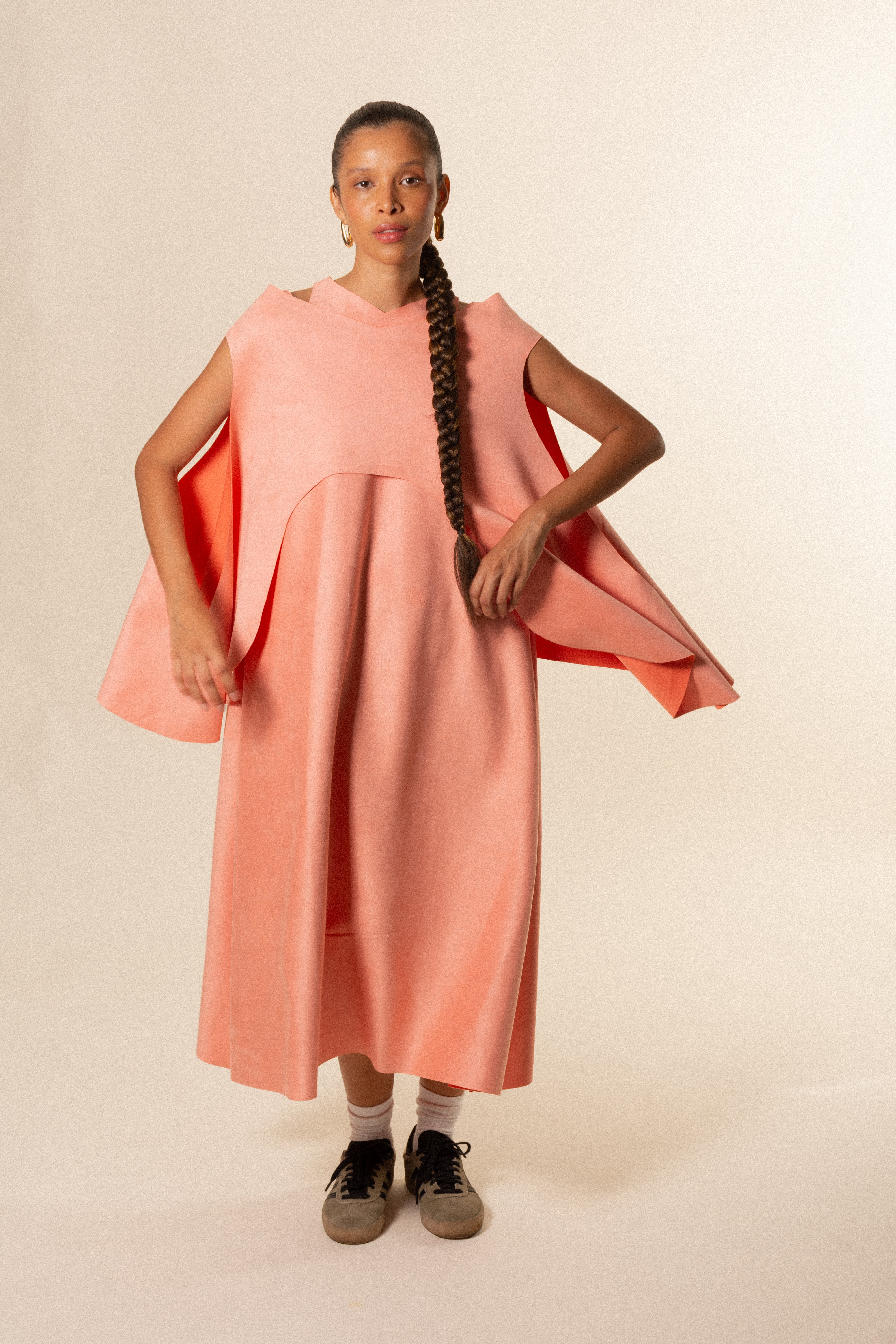La modelo mide 1.70 m y está usando talla única.