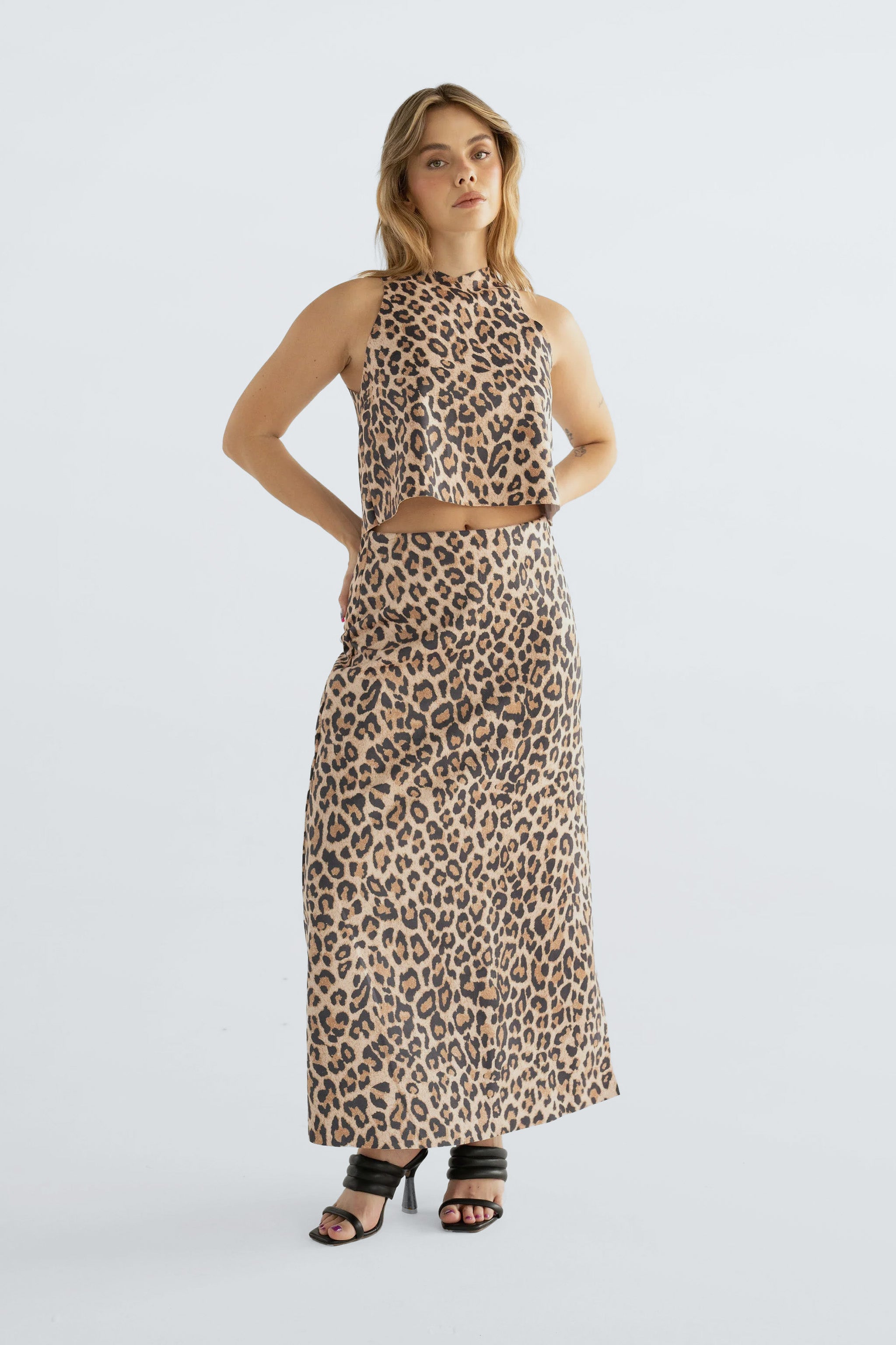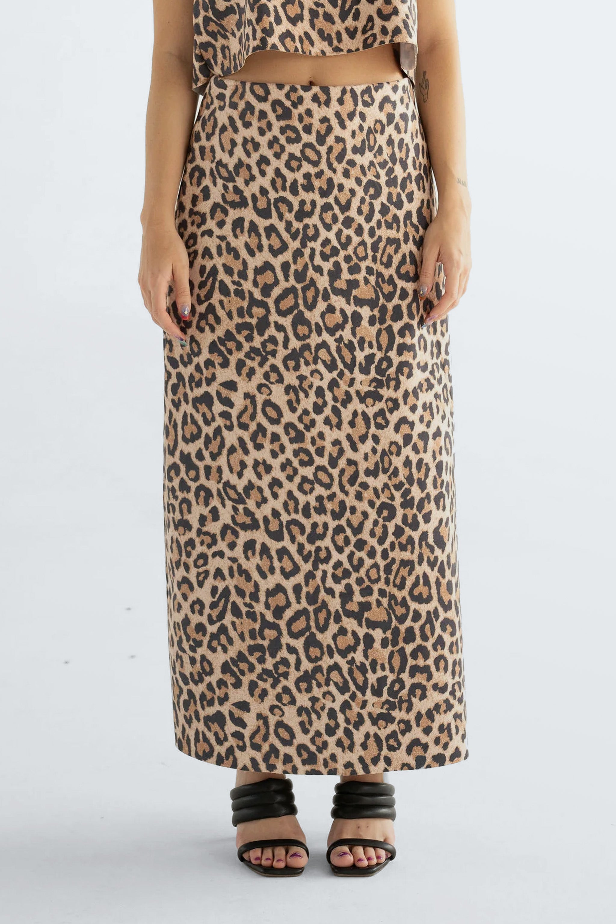 Falda larga para mujer en suede con línea A, ideal para usar con tus prendas esenciales favoritas.