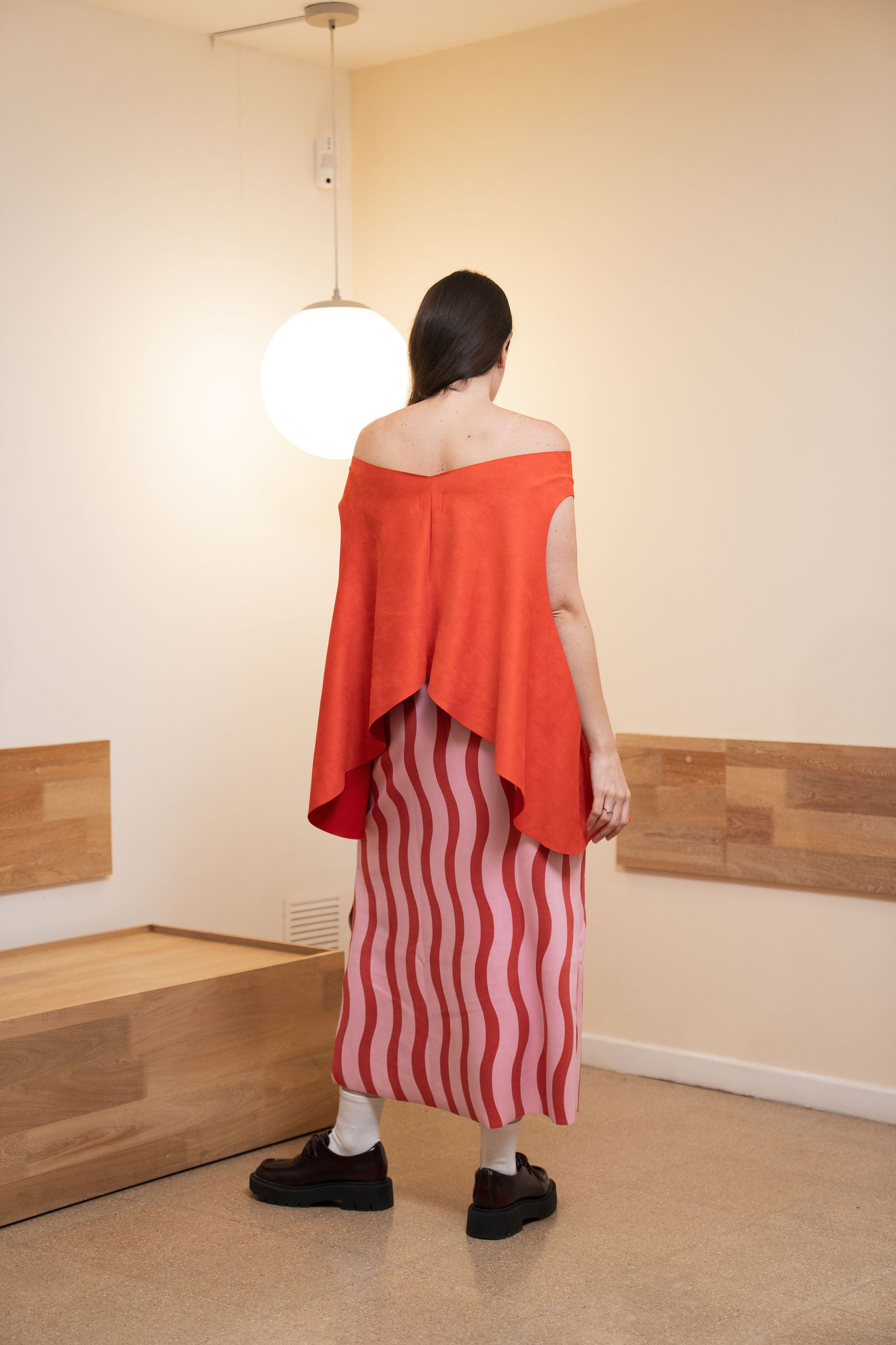 Falda larga para mujer en suede con línea A, ideal para usar con tus prendas esenciales favoritas.