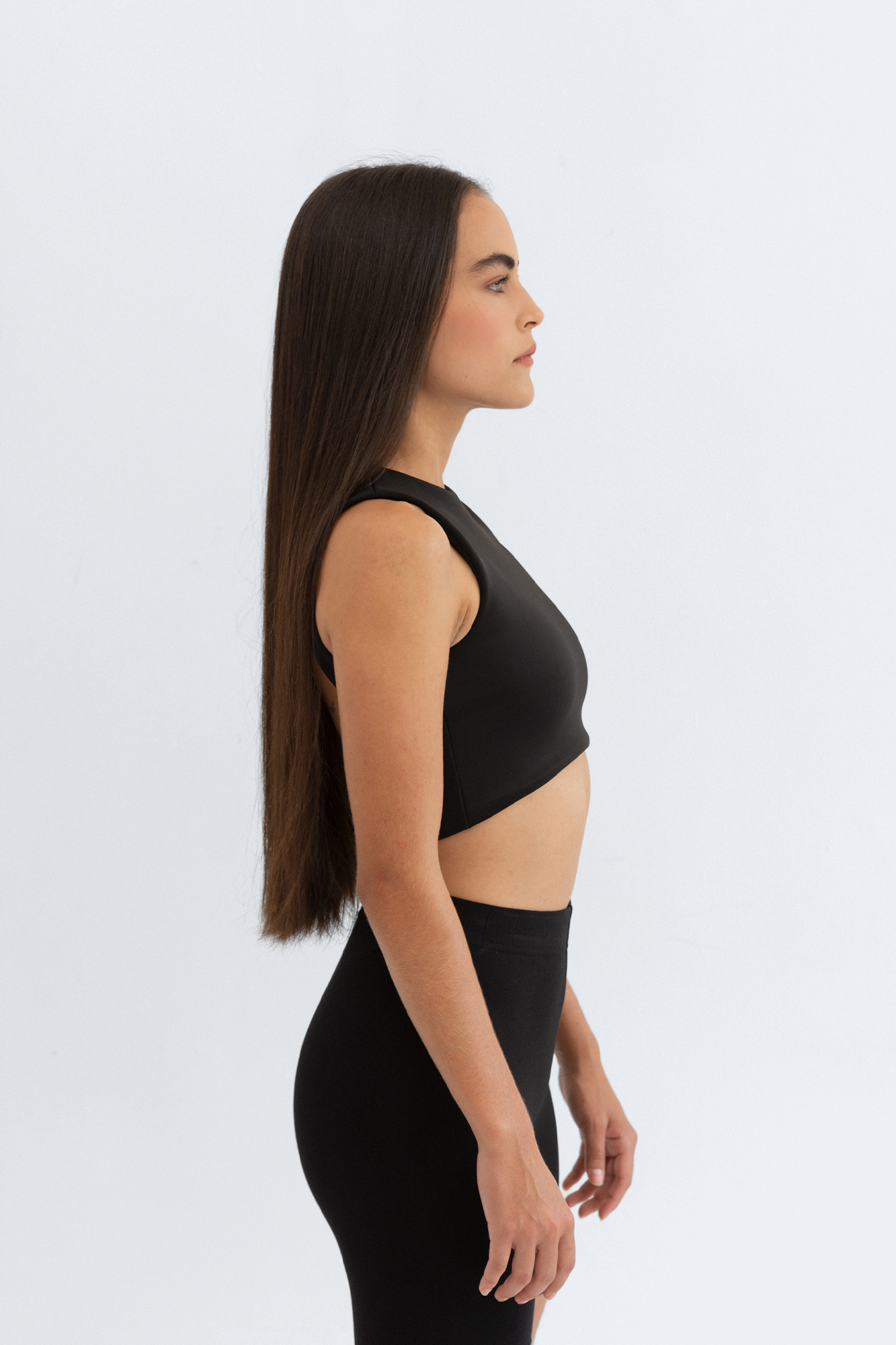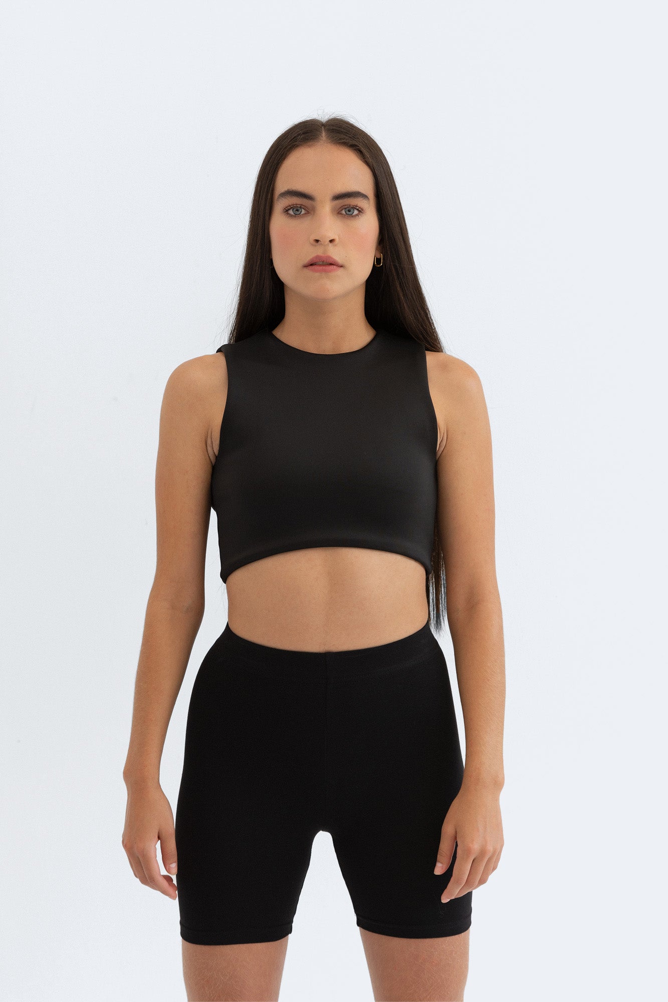 Largo moderado: Un poco más largo que un crop top clásico, lo que lo hace más versátil.