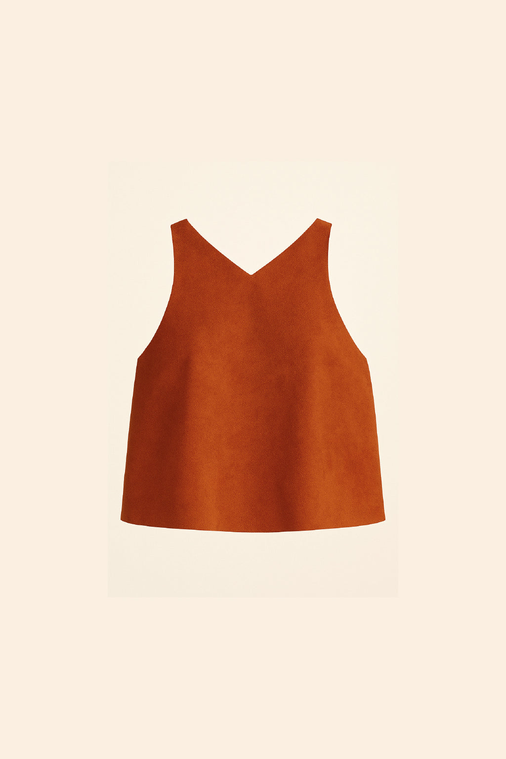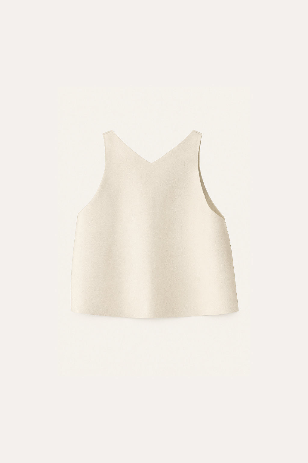 Nuestro top más icónico. El Top Cleo tiene una silueta holgada tipo crop que se ajusta suavemente a los hombros y realza la figura gracias a su cuello alto. La tela estructurada con caída fluida da un toque moderno y elegante sin esfuerzo.